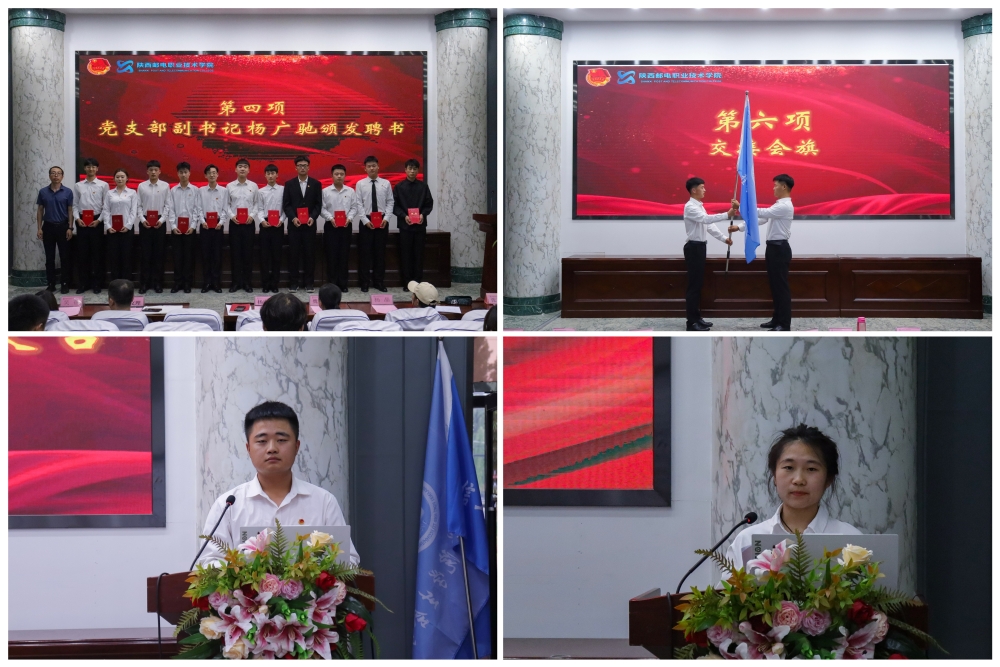 张梦丹老师宣读完第十七届学生分会新任干部名单后,进行了通信工程学院学生分会会旗的交接工作。新任轮值主席王隆飞、新任团总支副书记张靖做表态发言,呼吁大家作为一个团队要凝心聚力,争做学院良好秩序的维护者、良好风气的倡导者与宣传者。新一届学生分会将拿好接力棒,以更加饱满的热情去开展工作,不断探索、不断进步、不断创新,在奋斗中绽放青春,为服务学院师生贡献力量!