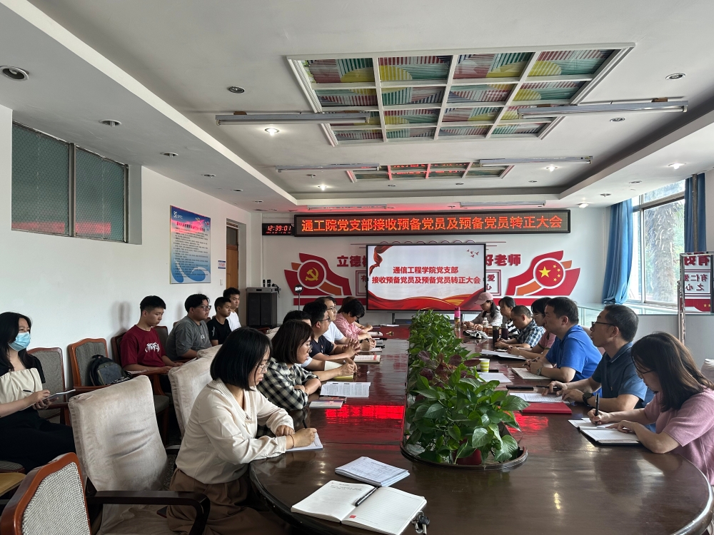 2023年6月24日12:30,通信工程学院党支部在一教休息室召开支部党员大会,讨论接收预备党员及预备党员转正等事项。会议共有18位正式党员参会,超过应到会有表决权人数的半数,符合大会召开条件。会议由通信工程学院党支部书记韩文理同志主持。