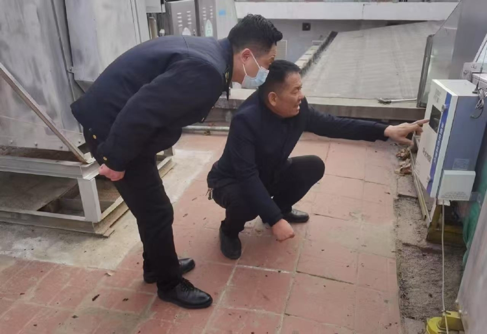 检查组先后对食堂环境卫生、从业人员健康证、食品采购进货查验、餐厅消防安全、餐具清洗消毒、加工操作、原料贮存、索证索票、食堂台账、油烟治理等方面进行了细致检查。检查中张科长要求食堂严格执行“十统一六到位”标准,严格落实食品安全主体责任,明确人员岗位职责,严格执行索证索票等各项食品安全管理制度,按照实际情况,及时完成食堂各类“日管控”、“周排查”、“月调度”的填报;杨组长要求食堂进一步优化油烟净化设备,确保设备正常运行,油烟排放符合环保标准。同时,要加强对油烟净化设备的日常维护和清洗。