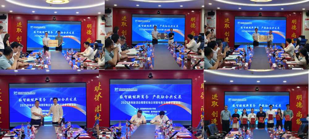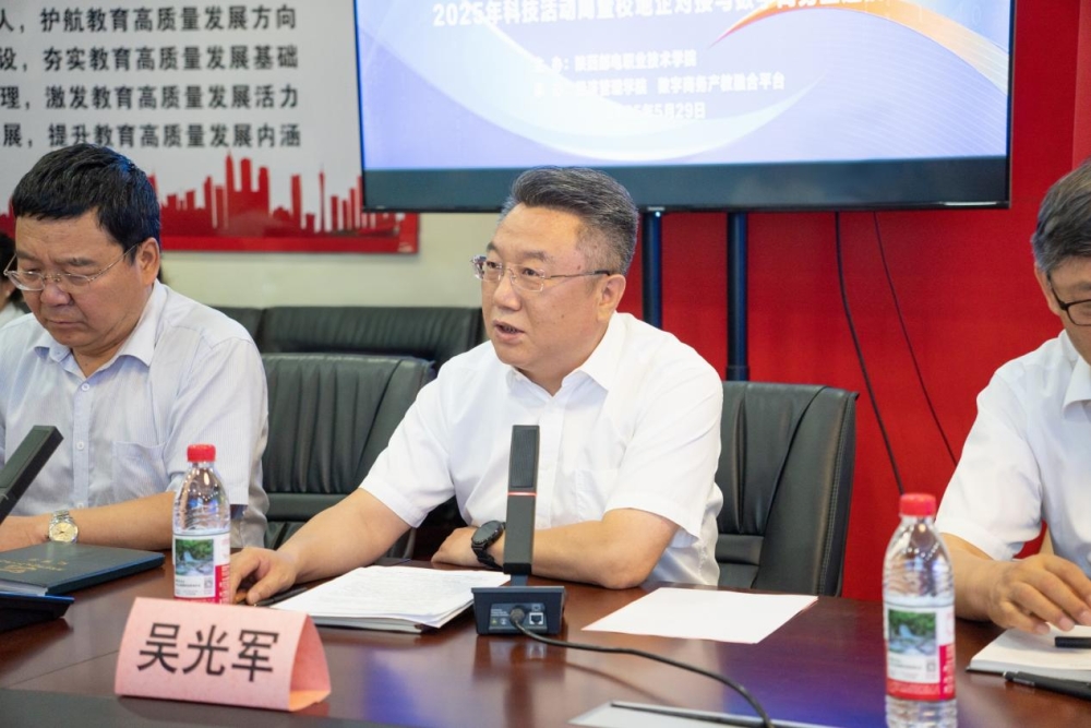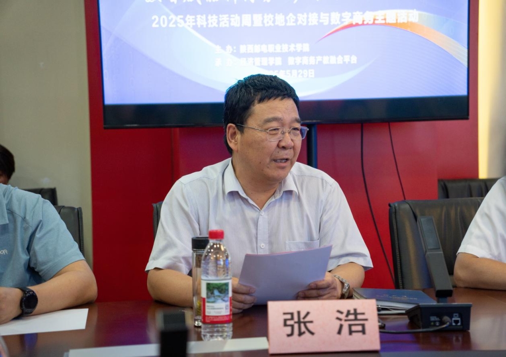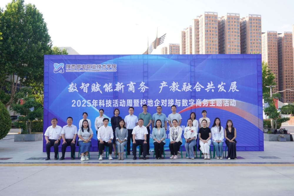 2025年5月29日,陕西邮电职业技术学院经济管理学院联合数字商务产教融合平台,成功举办“数智赋能新商务 产教融合共发展”科技活动周暨校地企对接与数字商务从主题活动。活动聚焦渭城区环大学创新产业带建设背景下的数字经济发展需求,汇聚咸阳市渭城区政府领导、院校专家、十余家知名企业代表及校领导吴光军、张浩等嘉宾,共探数智技术赋能产业升级与人才培养新路径。