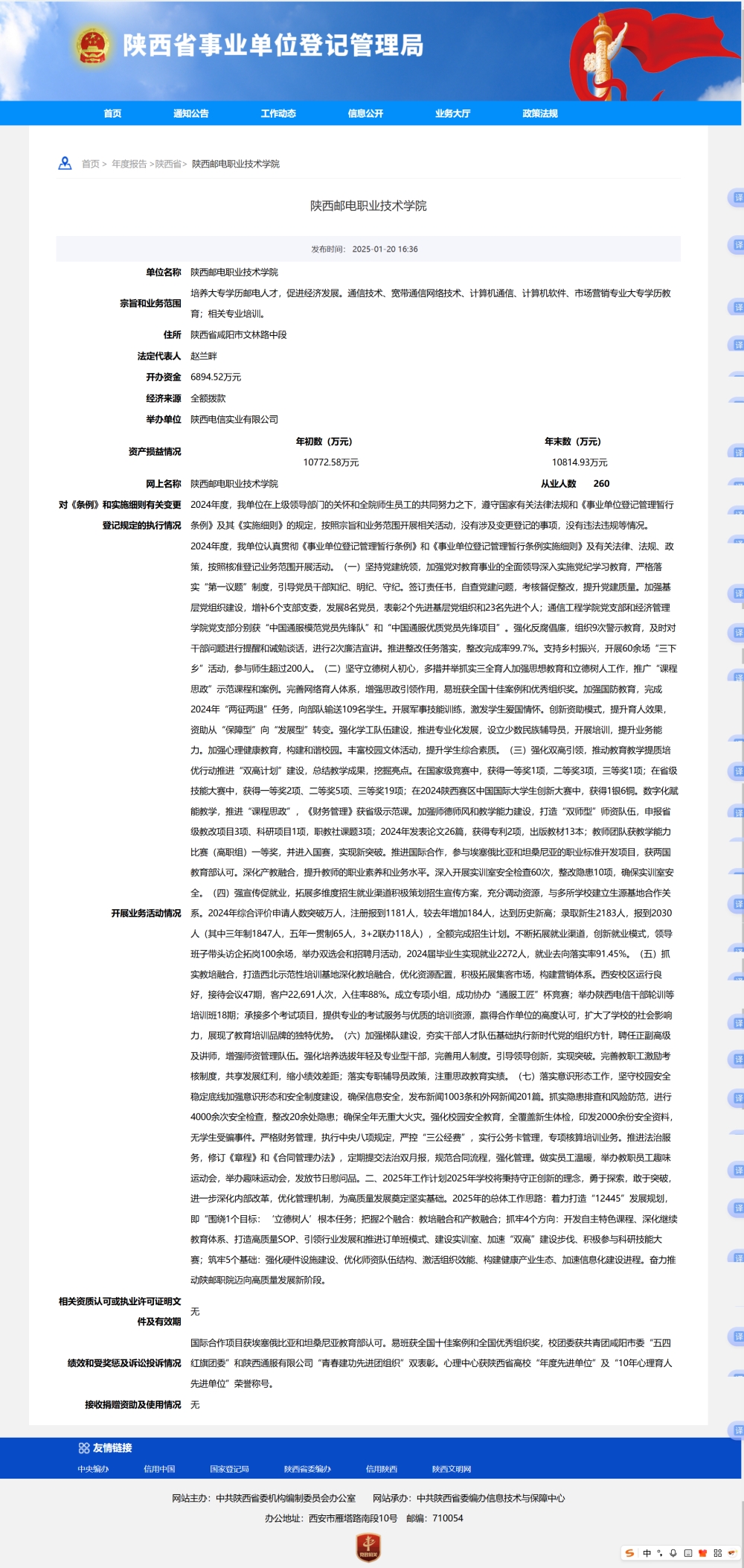 陕西省登记管理网--陕西邮电职业技术学院2024年度报告