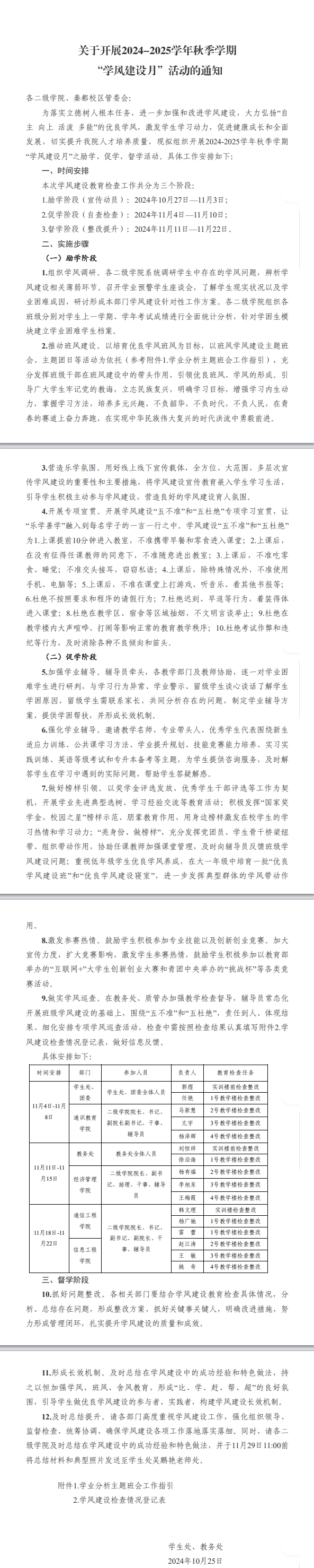 关于开展2024-2025学年秋季学期“学风建设月”活动的通知