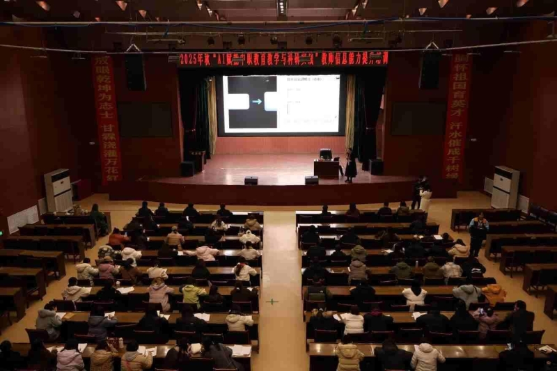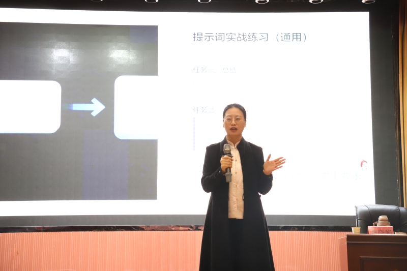 培训过程中,乔晓娟副院长紧密结合中职教育人才培养特点与教学实际,聚焦AI技术在教育领域的实战应用展开深度讲解:从教学设计的智能化优化、课堂互动的场景化创新,到教学资源的高效开发,再到科研课题申报的思路拓展、学术论文撰写的效率提升,全方位覆盖教师教学科研全流程。参训教师全程专注聆听、认真记录,在互动交流环节更是积极提问,围绕“AI技术在机电、学前教育等中职特色专业的具体应用场景”“AI工具与传统教学模式的融合技巧”等问题展开深入探讨,现场学习氛围浓厚。